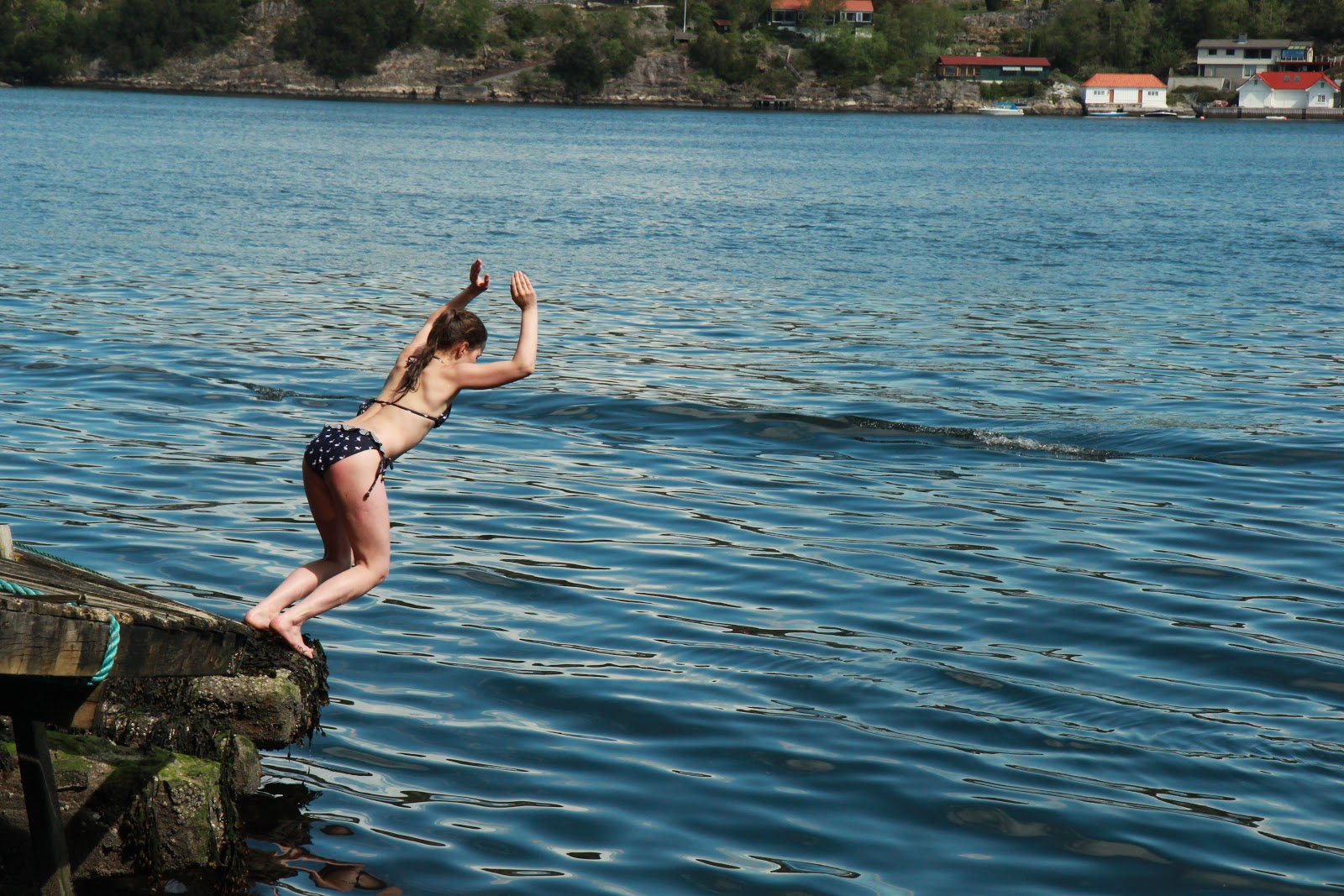 Lillesøs som bader. Kaldt..